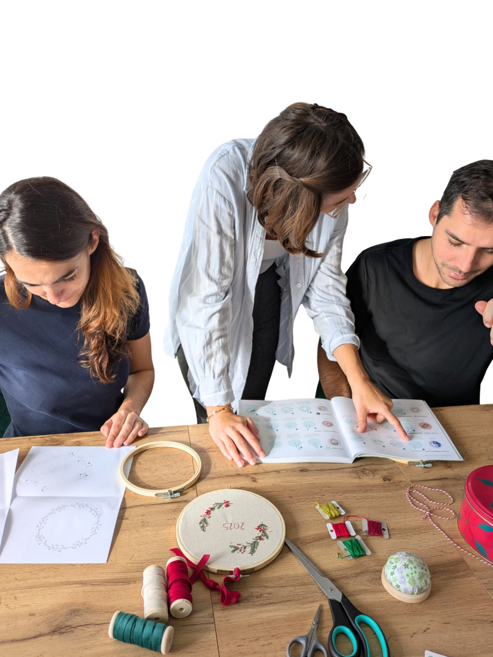 Illustrations personnalisées, broderies uniques, cadeaux symboliques inventés ensemble.